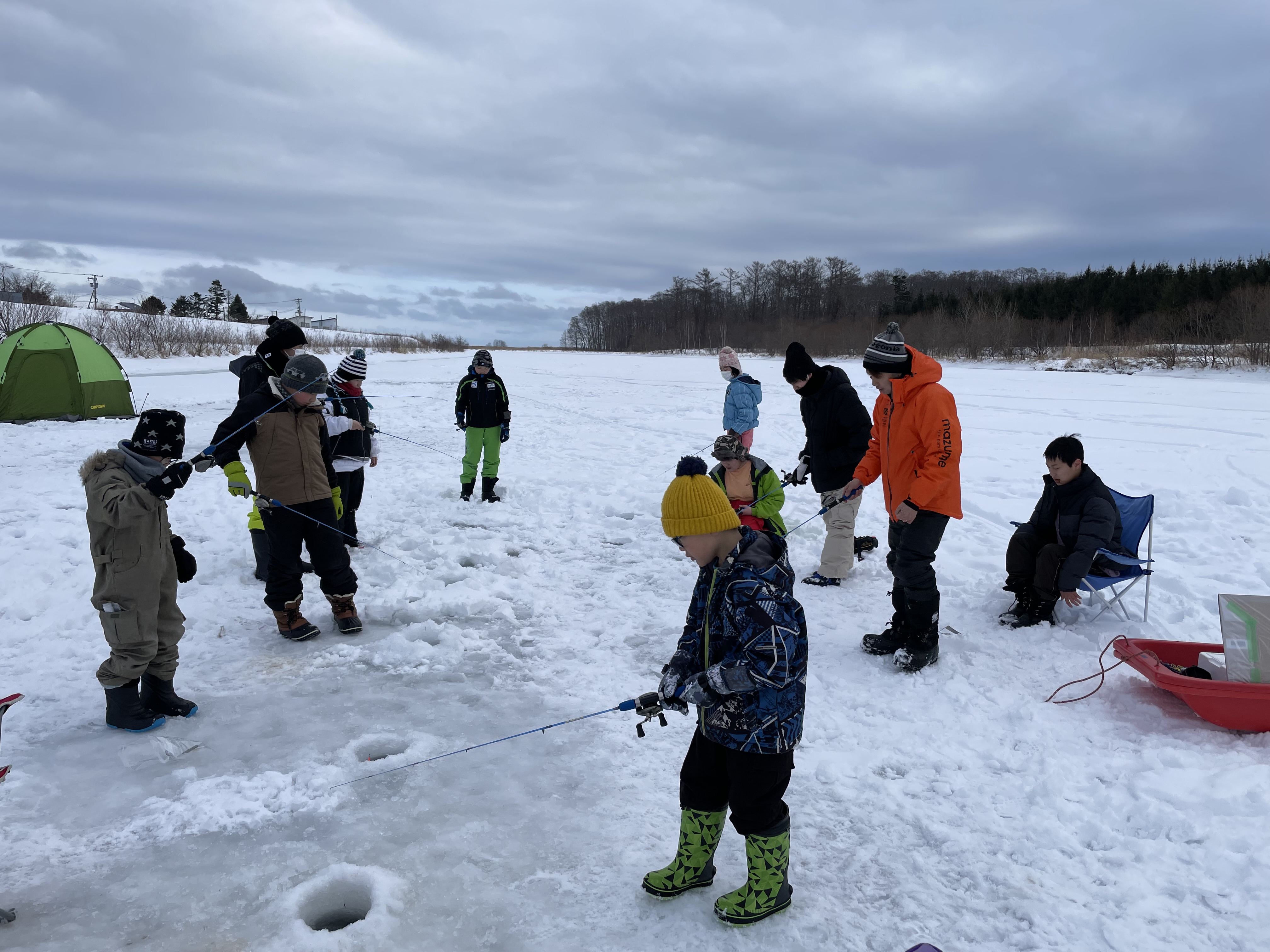 【氷上チカ釣り体験】 冬には季節ならではの氷上釣り体験をおこないます。四季に応じた活動プログラムを提供しています。