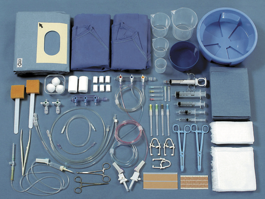 【写真は医療用手術キット】製造している製品の一部です。医療現場では欠かせない材料を作っています。製造においては、一つの工場の中で製品が完成するのではなく、色々な工程があり、並行して作業しています。