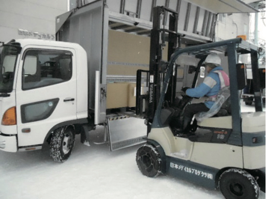 自社工場と倉庫の(豊岡と東川の工場、物流センターの移動)行き来なので、お客様先へ配送することはありません。