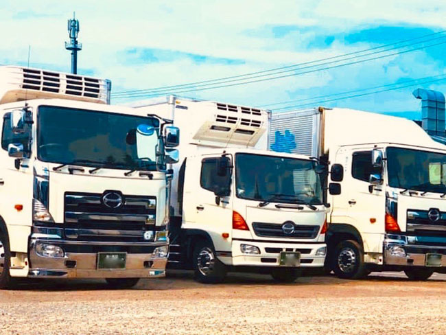 冷凍・冷蔵2層式の大手コンビニ様専用特注車を5台導入しており、長く安定した仕事量を確保しています。