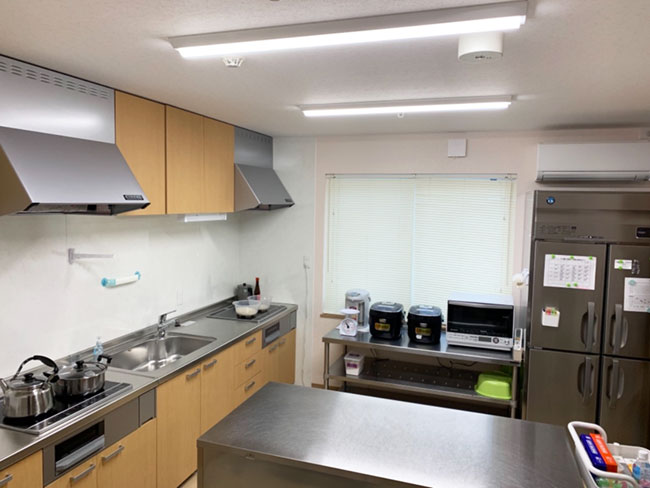 厨房です。調理時間は充分にあるので少しずつ進めていってください♪小さいお子様がいらっしゃる方など、急なお休みなどにも対応しますので、子育て中の方もご安心ください。