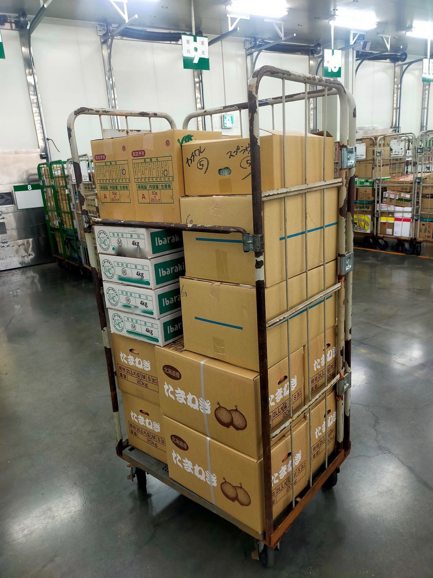 【慣れればシンプルな作業内容】「この野菜の○○店に3箱!」等の指示のもと仕分け作業を行います♪仕分け後はカゴ車に積む作業。形や大きさの違う箱を考えながら積みます。パズル感覚で慣れると楽しいですよ!
