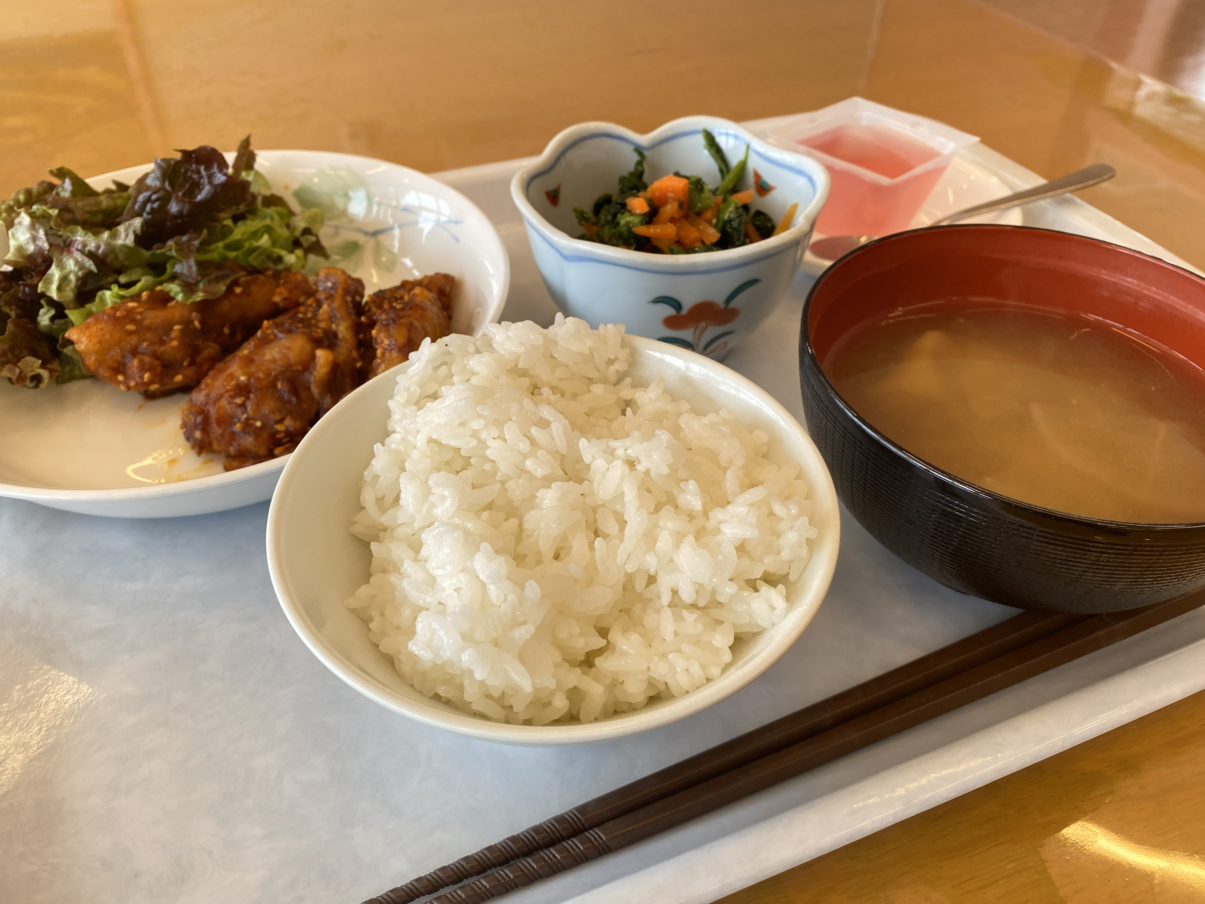 定食の一例/栄養バランスの取れたメニューが中心です。事前に決まった献立に沿って調理を行います。