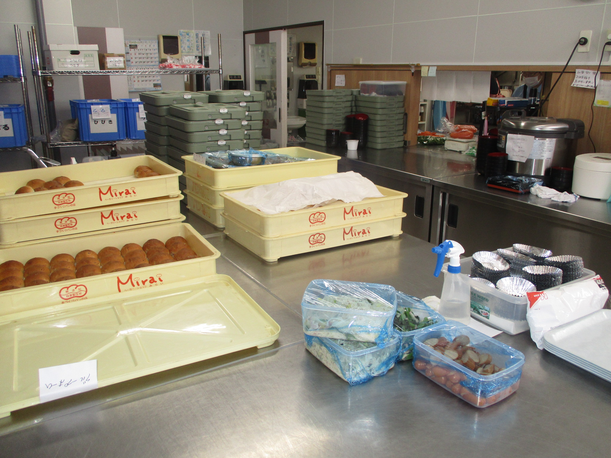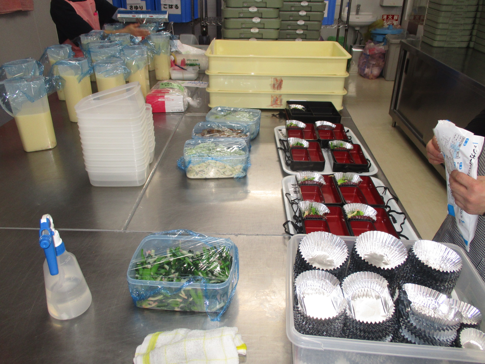 各グループホームへお届けするおかずと高齢者宅へお届けするお弁当を仕分けていきます。