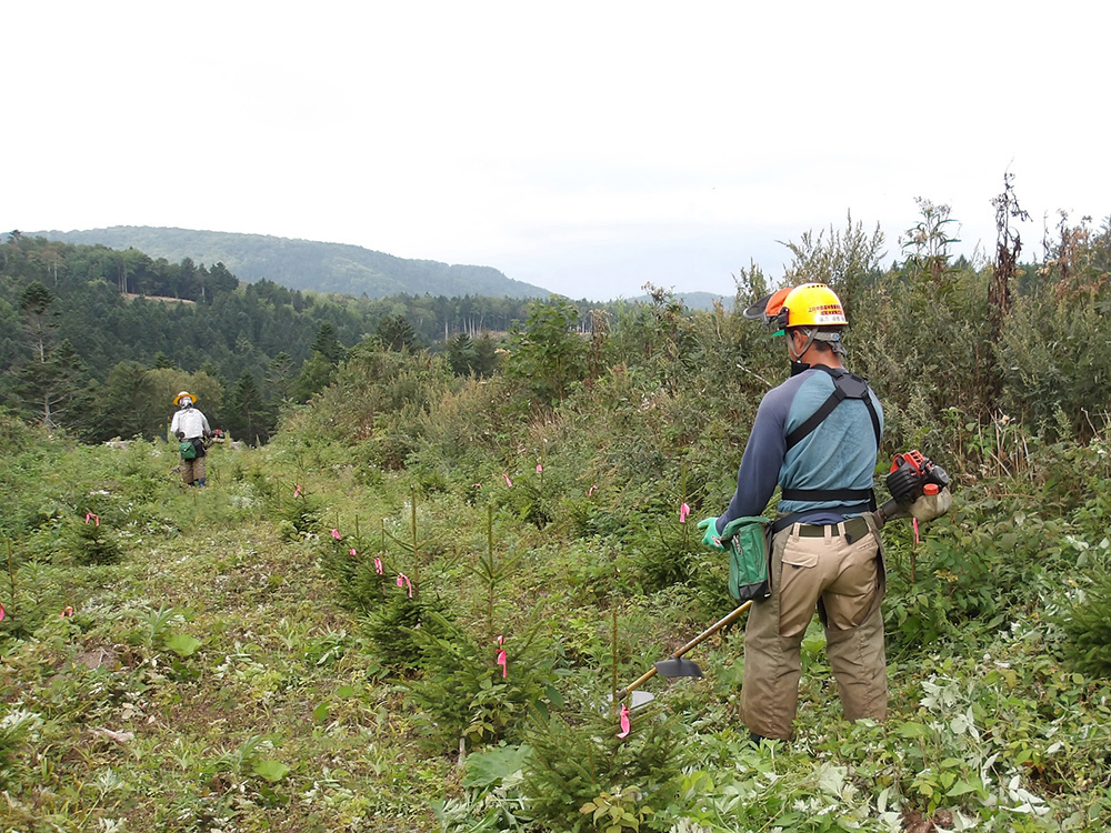・旭川近郊の道有林にて、新しく苗を植える←メイン