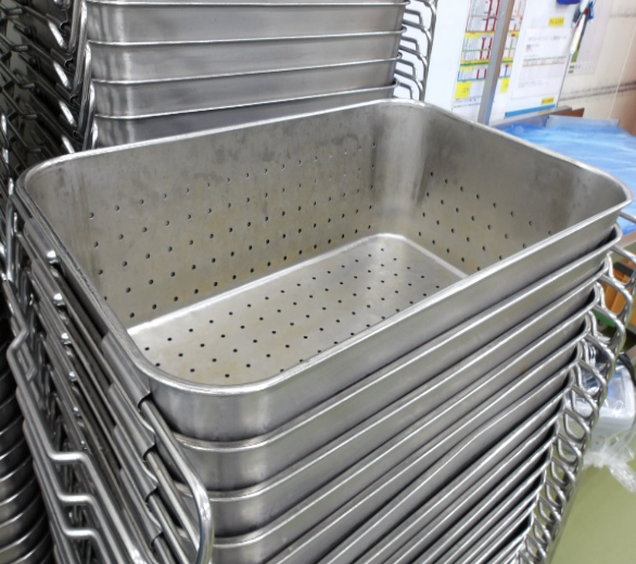 使用済みのコンテナ、備品類などを洗浄していく作業です。