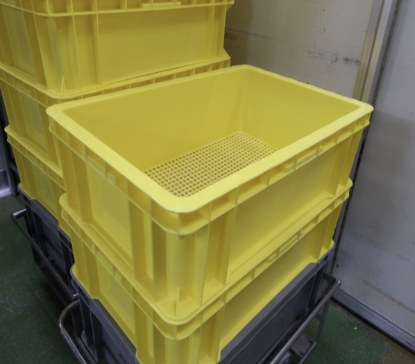 工場で使用したコンテナ、備品類などを洗浄する単純作業!