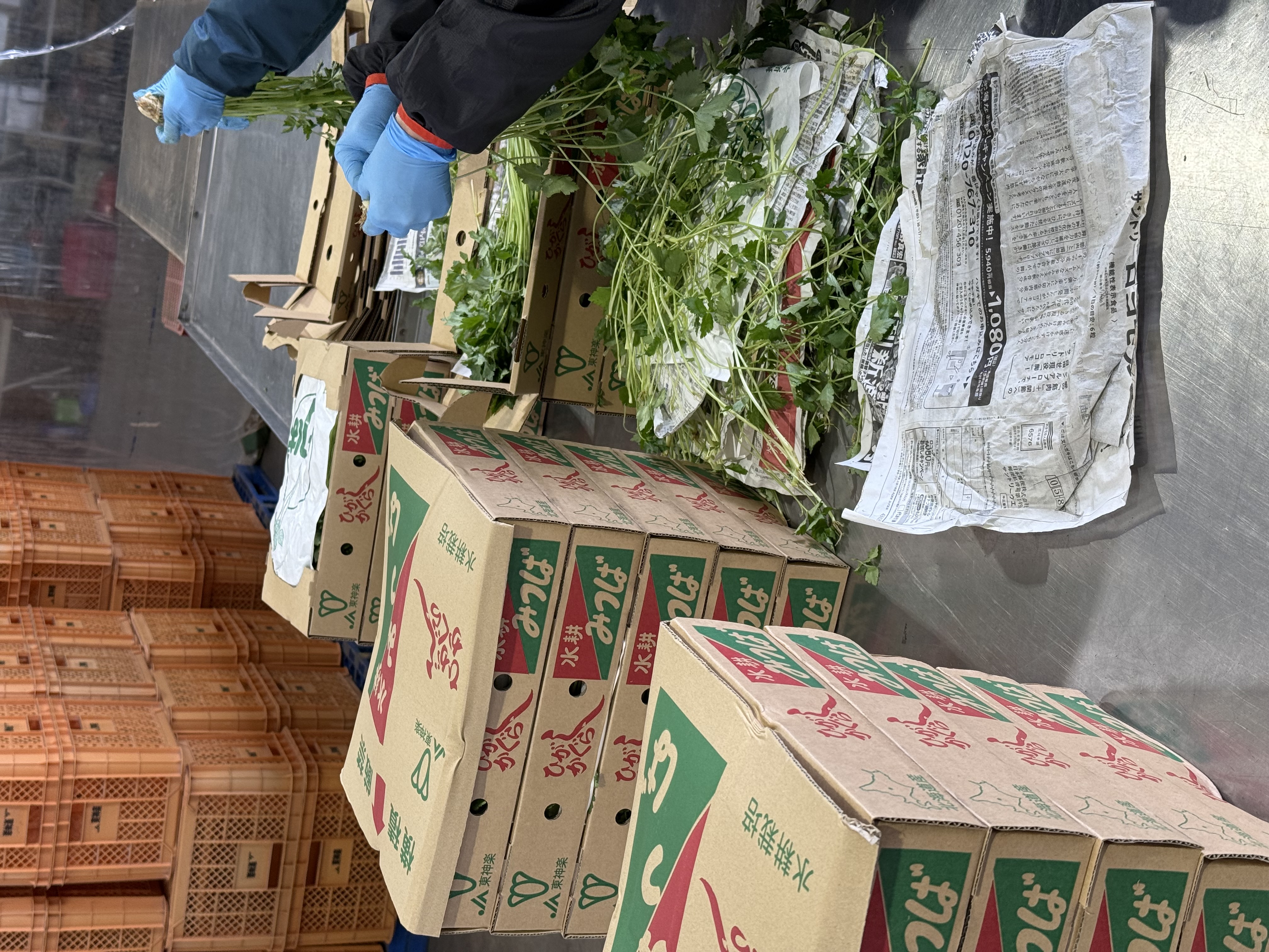 新鮮な野菜を丁寧に受け取り、野菜を保存する機械へ運ぶ等次の工程へとつなぐお仕事です。