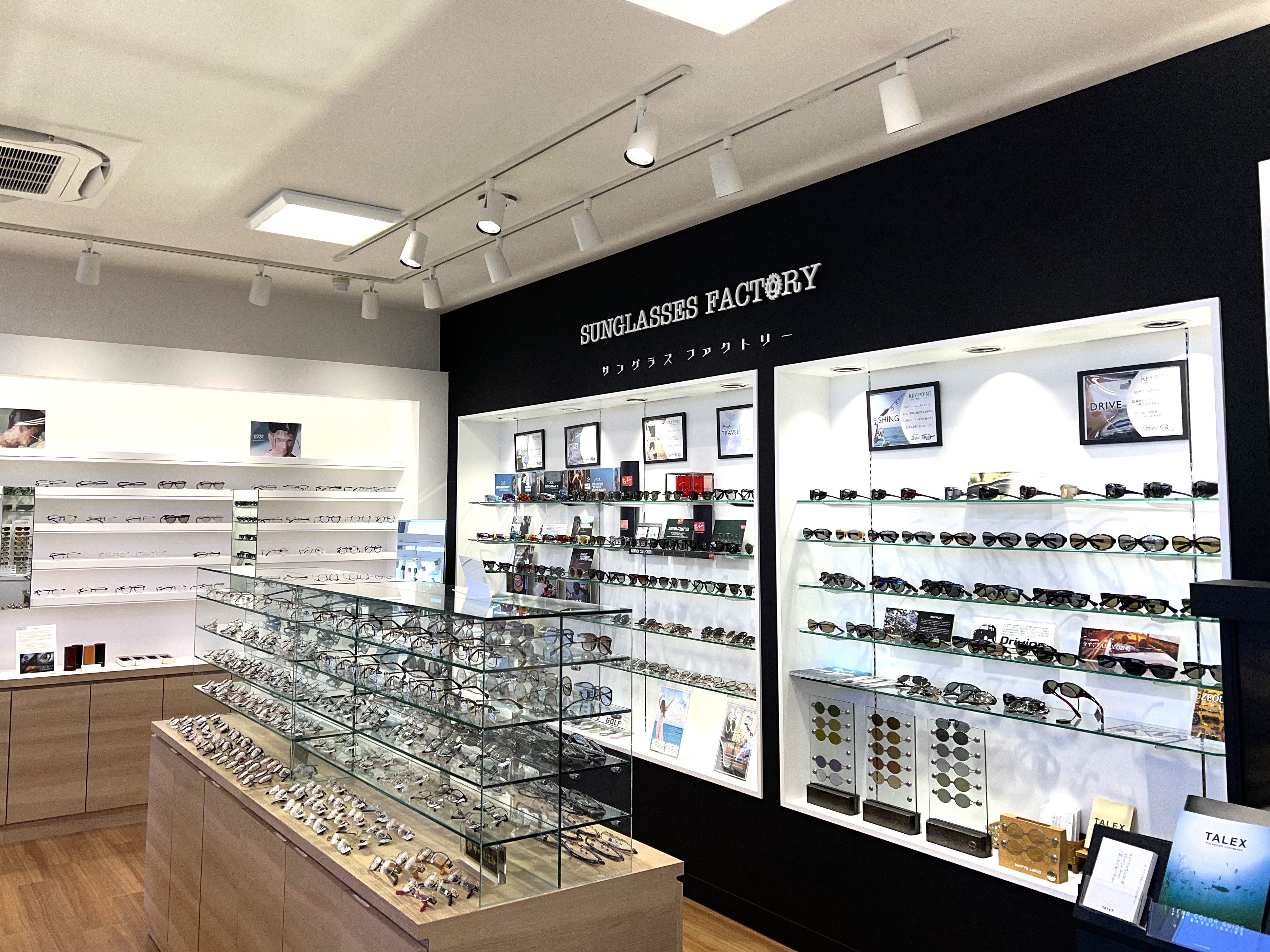 店内には、サングラスに特化した「サングラスファクトリー」やレンズ交換専門の「レンズ工房」、「シチュエーション別体感コーナー」等、様々な切り口のコーナーを設置。