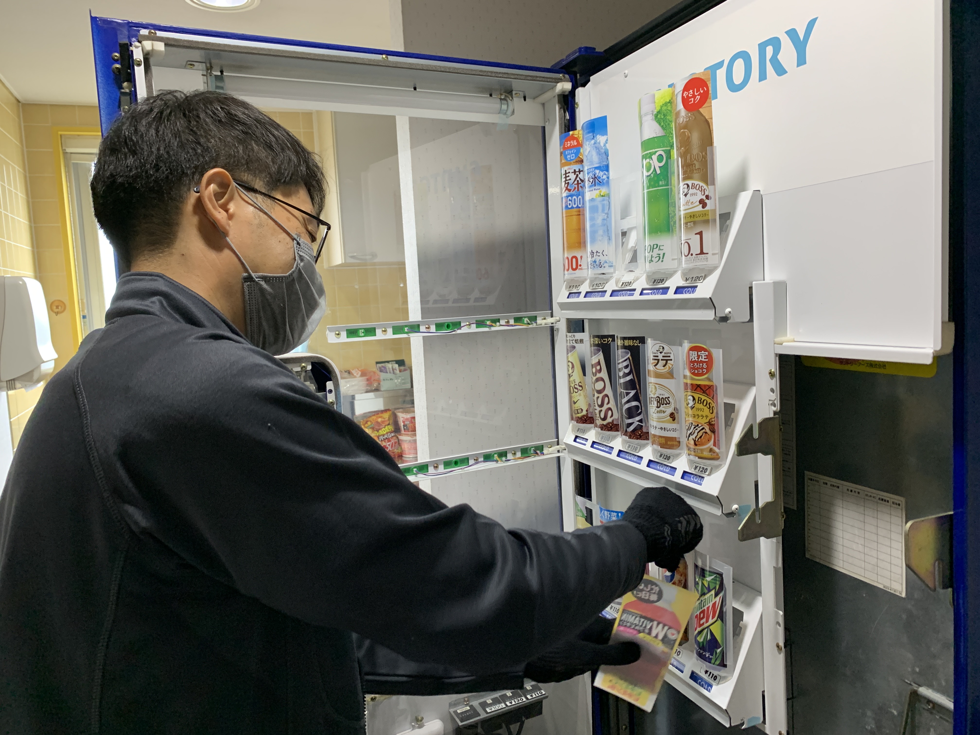 定期的に自動販売機の中身を補充します。各地に自動販売機があるので、担当地区を決めてルートは決まっています。季節毎に商品の一部を入れ替えたりもします。
