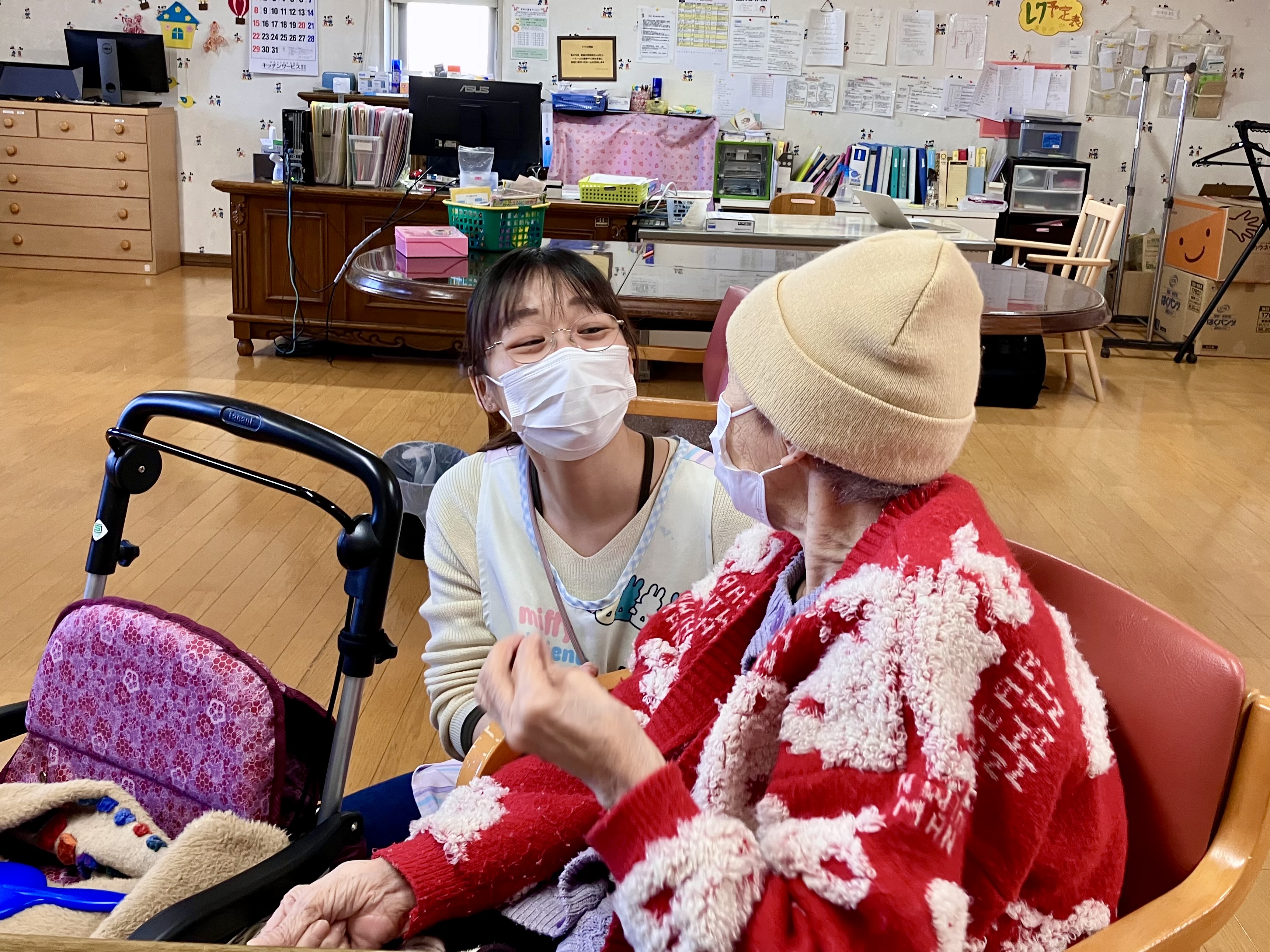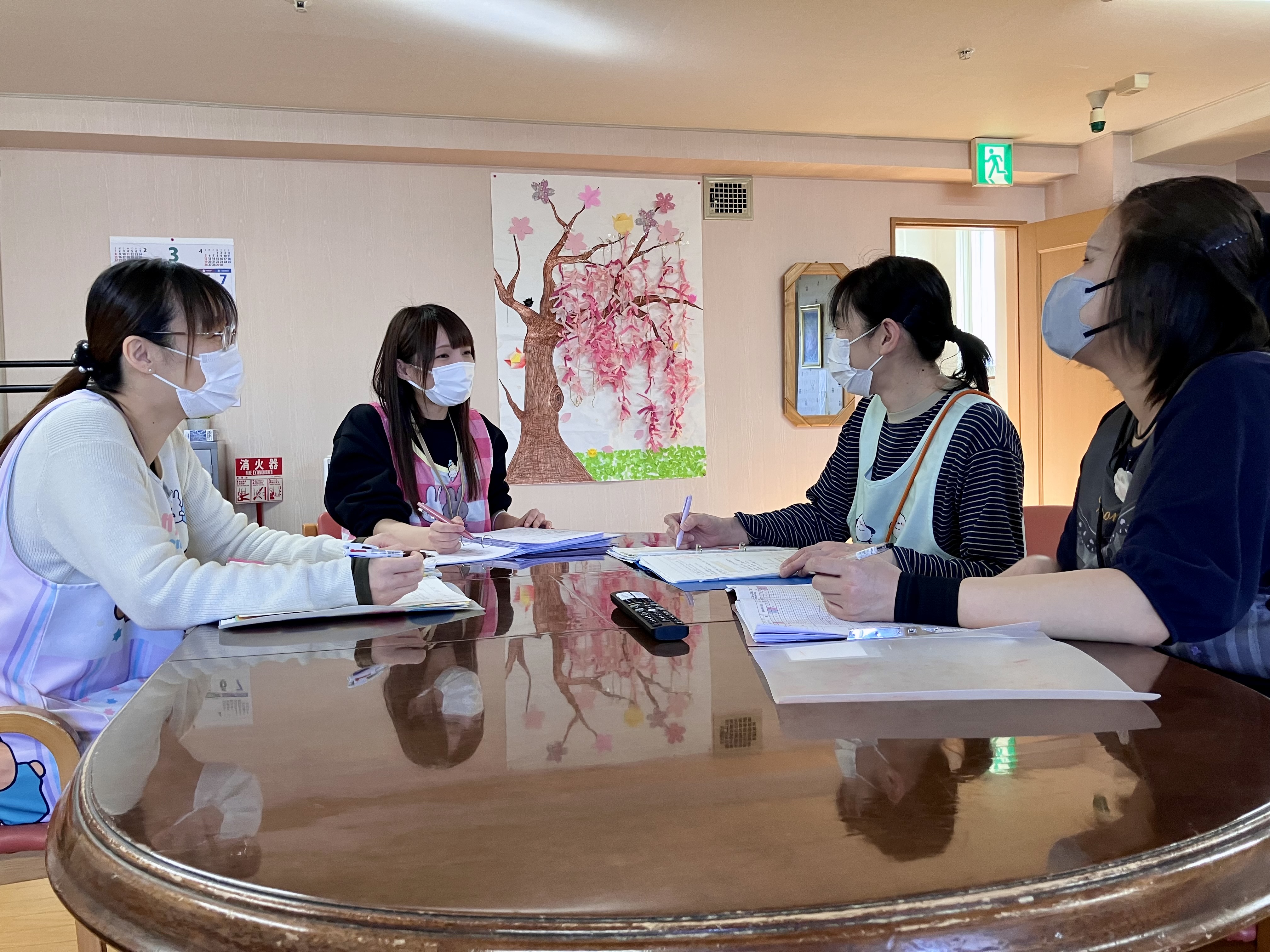 1フロア9名の利用者様を、余裕をもった人数体制でみていますので