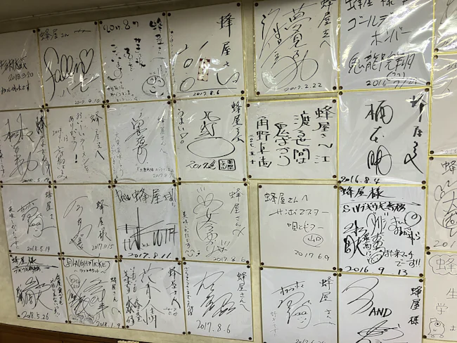 有名人のサインが並ぶ、言わずと知れたラーメン店。