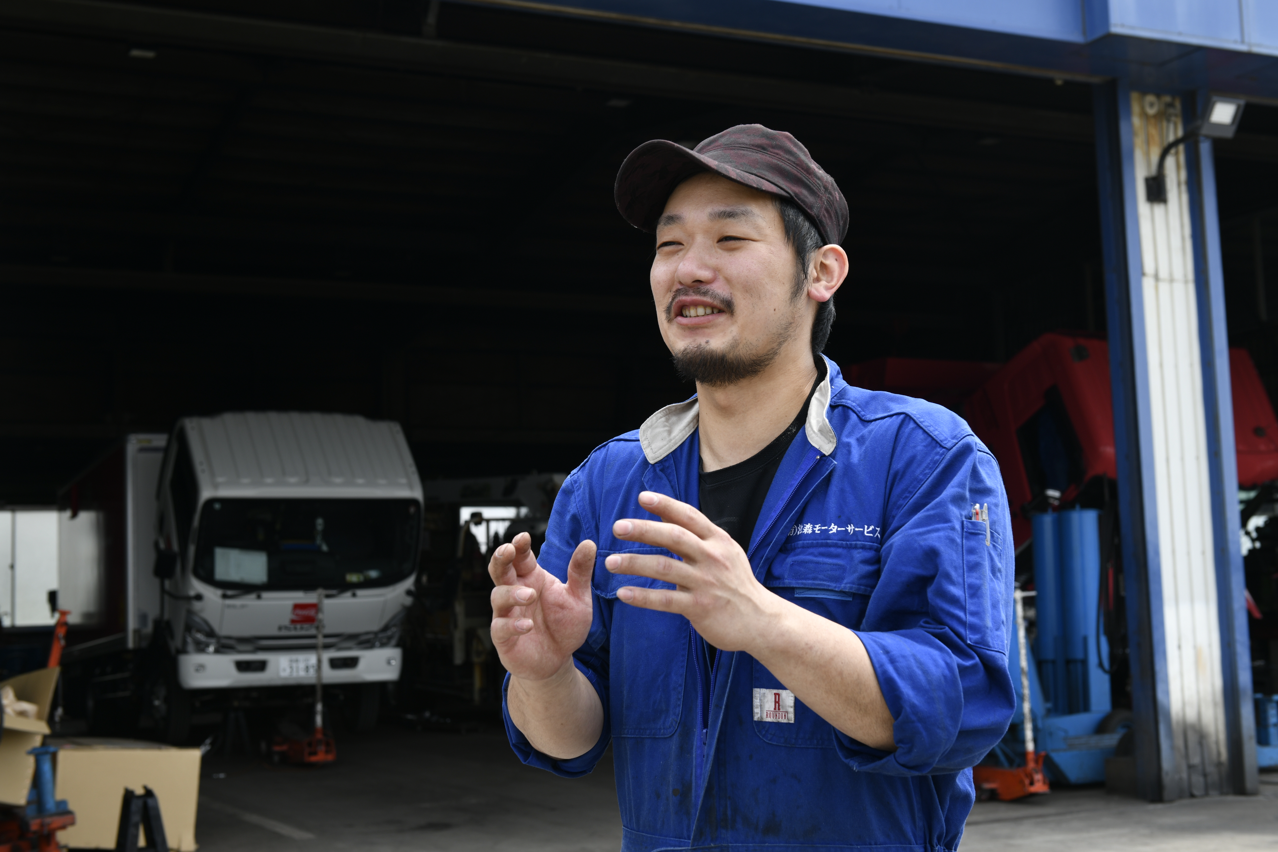 | 仕事内容 | トラック、バスの大型車を中心に、普通自動車の一般整備、点検、車検です。 |