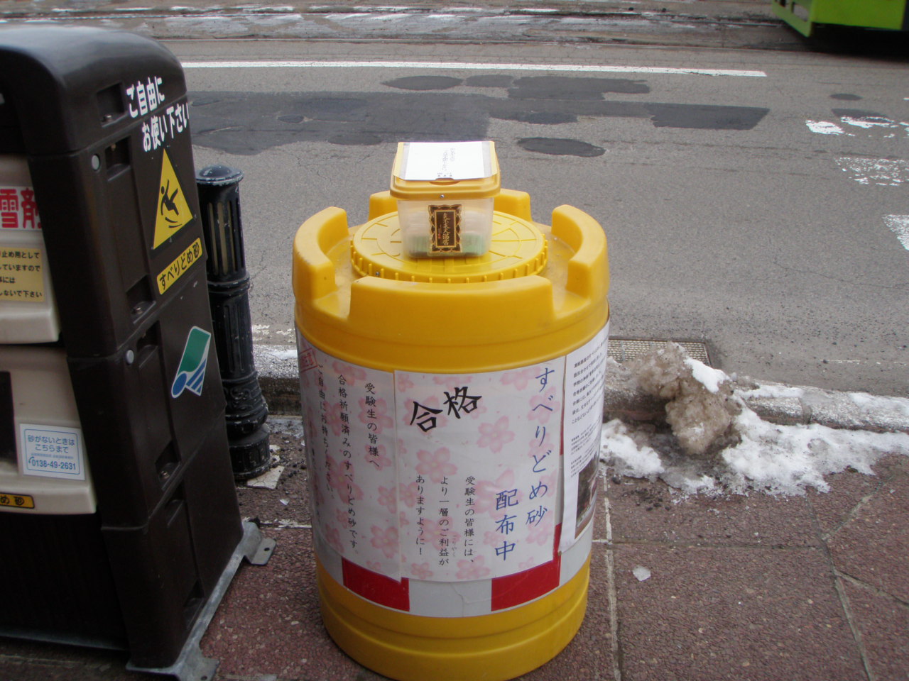 アクロス十字街前にて合格祈願の「すべり止め砂」を配布している会社です!