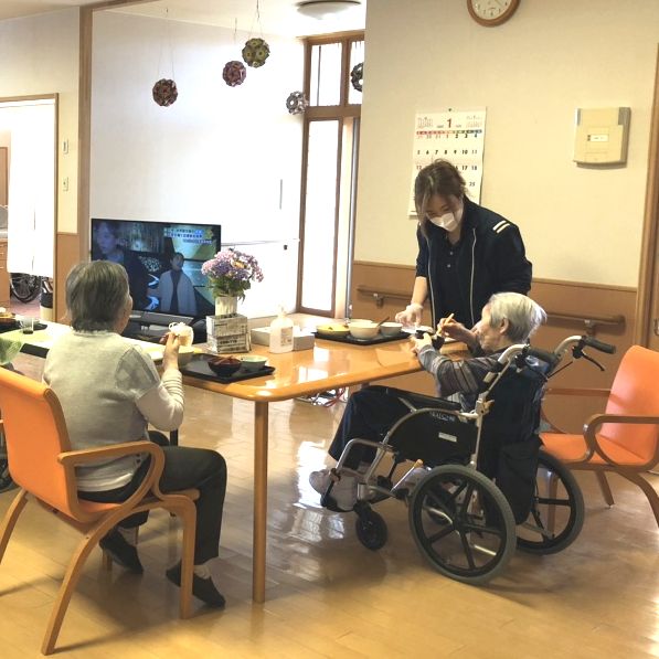 生活支援といっても、調理や入浴専門員がいますので、あなたのおしごとはとてもシンプル。入居者さんと一緒に1日を過ごし、日々の生活のお手伝いを行います。