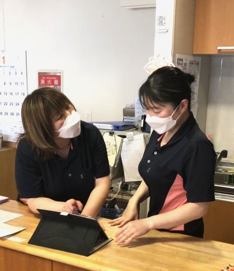 入居者さんのお食事の量や日々の様子をパソコンとタブレットで管理しています。選択ボタンを押したり、コメントを入力する程度なので、パソコンが苦手な方でもかんたんに操作できます。