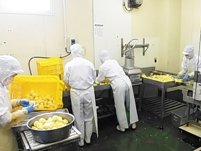 北海道の契約農家で育った新鮮な野菜を使い、スーパーやレストラン向けのカット野菜やペーストを製造・販売している株式会社北海道フレッシュフーズの工場です。