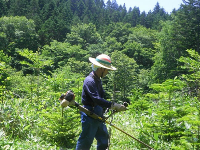 現場では、作業員が植林や草刈り、除間伐といった、環境保全や森林資源を後世に残すための大事な業務を行っています。