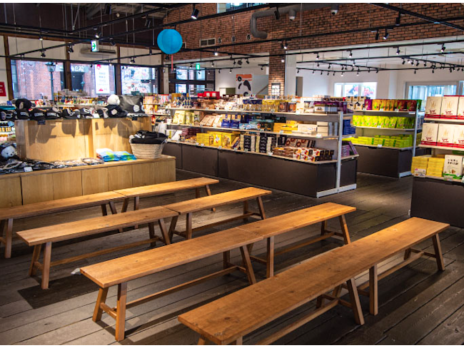 お店には珍味・スイーツ・グッズなど様々な商品が並んでおり、