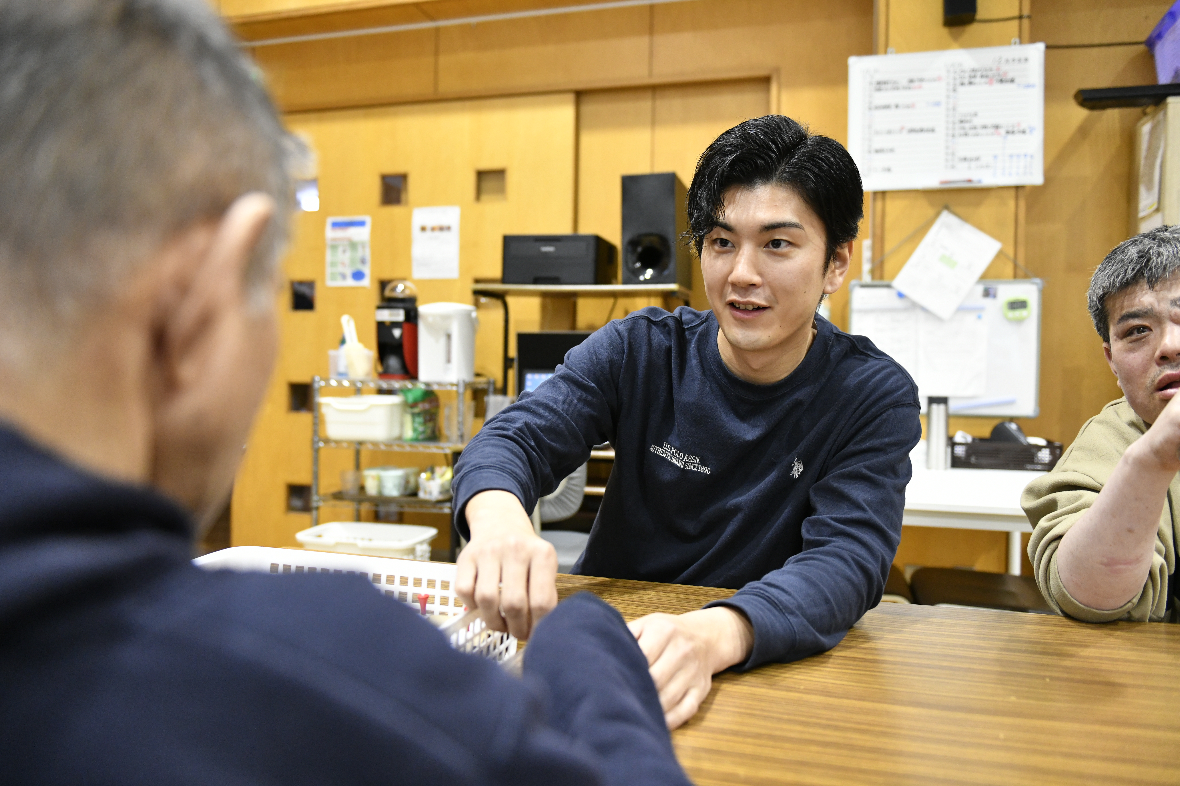 生活支援員として利用者さんと接する中で気付かされたのは、年齢を重ねても人は成長するということです。目標を立てて支援し、時間はかかりますが、それが達成されたときの喜びは大きいもの。「できましたね!」という声かけに、親指を立てた“グッドサイン”が返ってくる。言葉じゃなくても“嬉しい思い”は伝わりますし、そんな小さな変化や反応が日々のやりがいになっています。