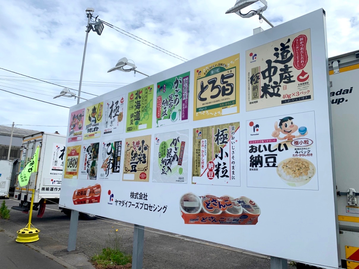 【納豆の看板が!!】当社のグループ会社(小樽)で納豆の製造も行っています。当社の入口に飾ってありますので是非ご覧下さい(笑)