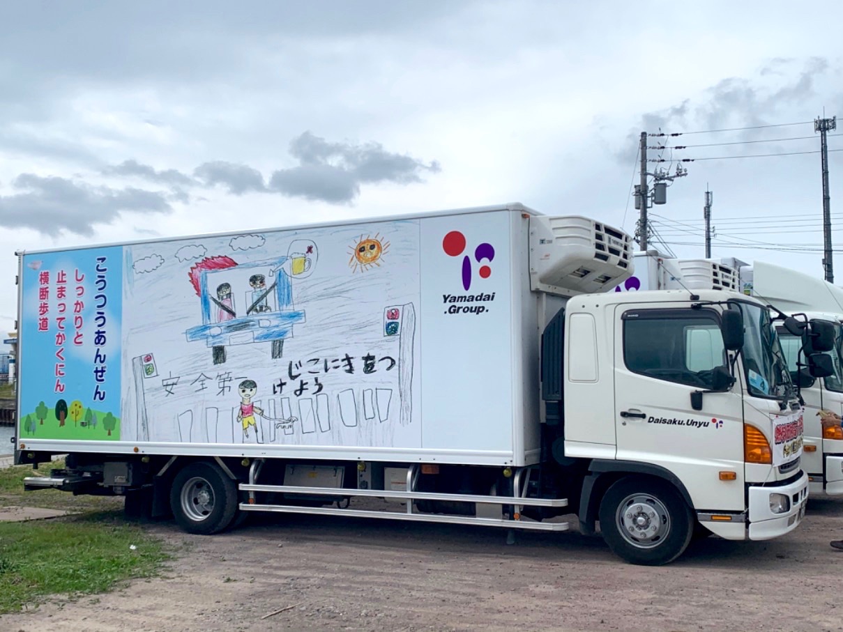 【車体に子供達の絵が!!】箱車に道南の保育園の子供達が書いた絵がプリントされたトラックです!地元の皆さんにも愛されています!