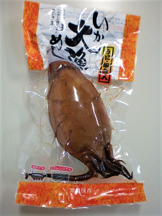 <いかめし>新鮮なうに、帆立を当社独自の製法にて炊きあげたジャンボいか大漁めしです。