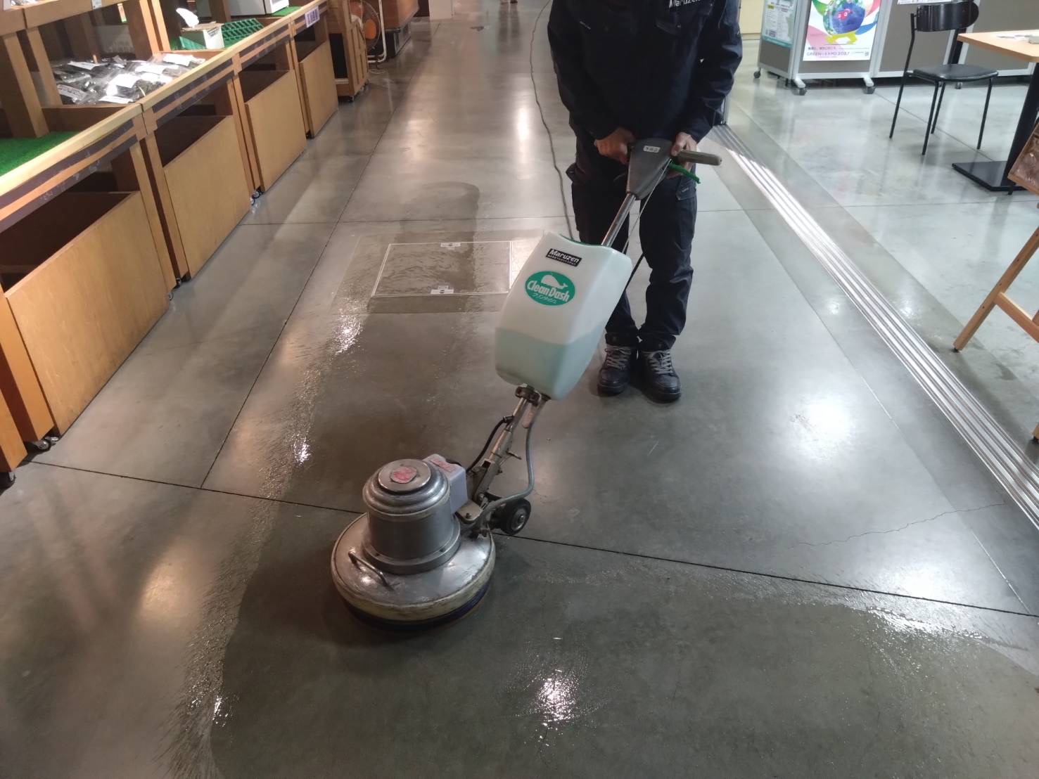 今回の募集は、専用機械「ポリッシャー」などを操り、病院や施設の床を磨き上げる技術職。