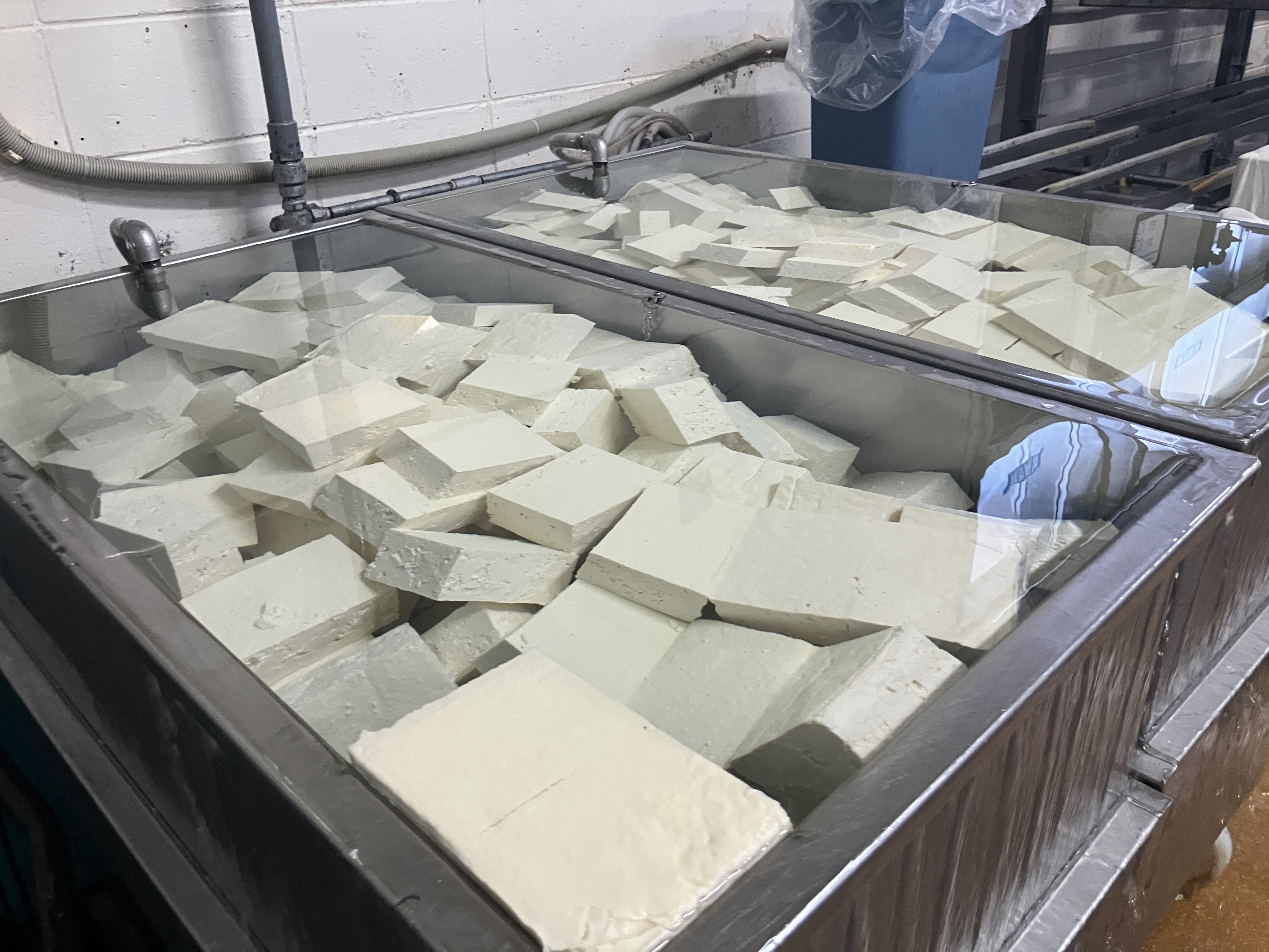 納豆・豆腐・揚げなど毎日の食卓にかかせない自社製品の数々。出来立て豆腐や通常買えない豆乳などを、従業員の方々に販売しております。発酵食品を食べて健康的に働きましょう♪