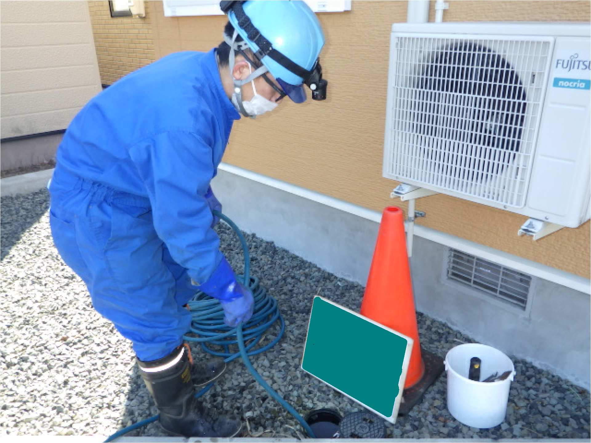 ビルや商業施設等の給排水設備には法律で定められた定期的な清掃が必要です。当社はそういった作業を手掛けているので、施設がある限り安定した仕事をすることが可能です。