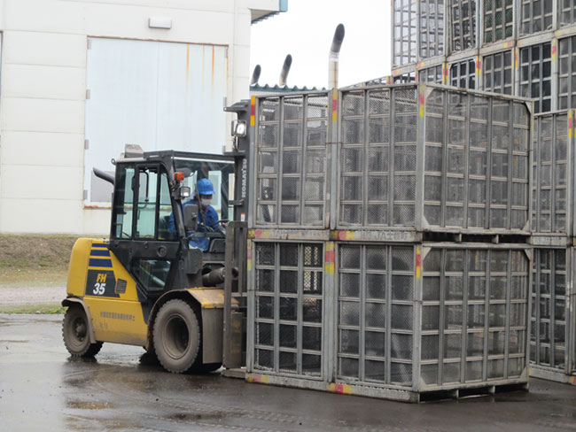 このフォークリフトを使って芋用コンテナの移動等をお任せします。