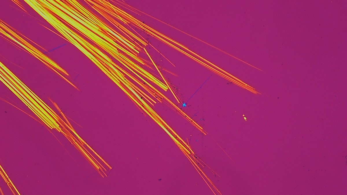 顕微鏡で建材に有害物質のあるなしを調べる作業
