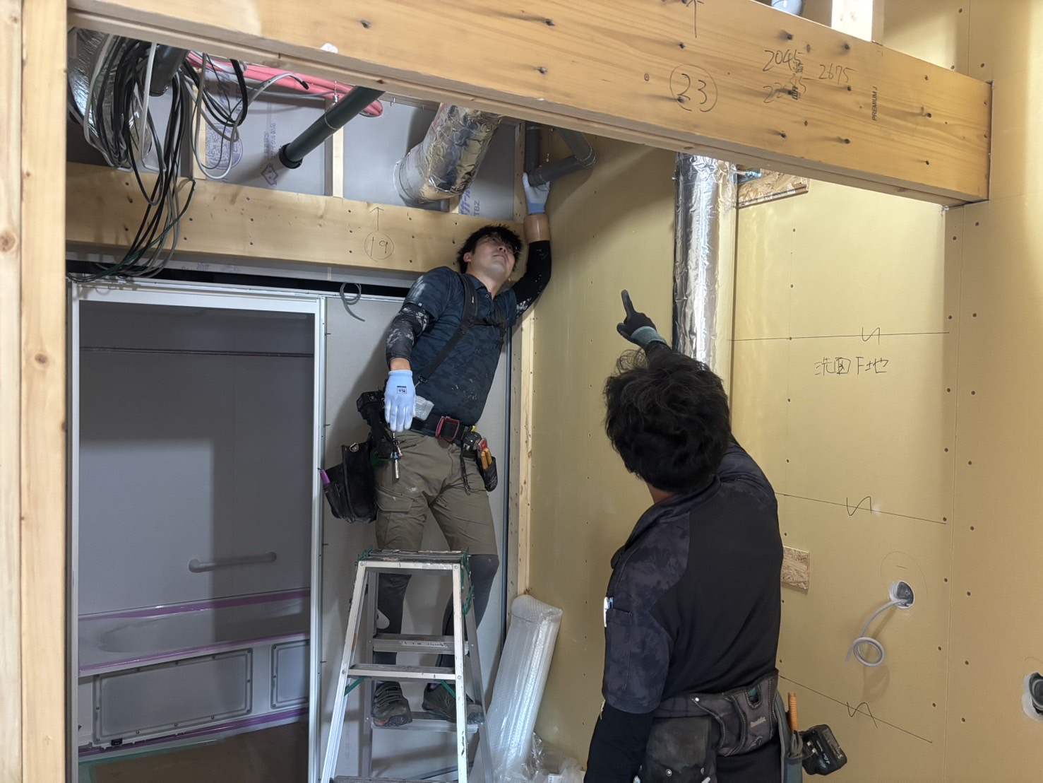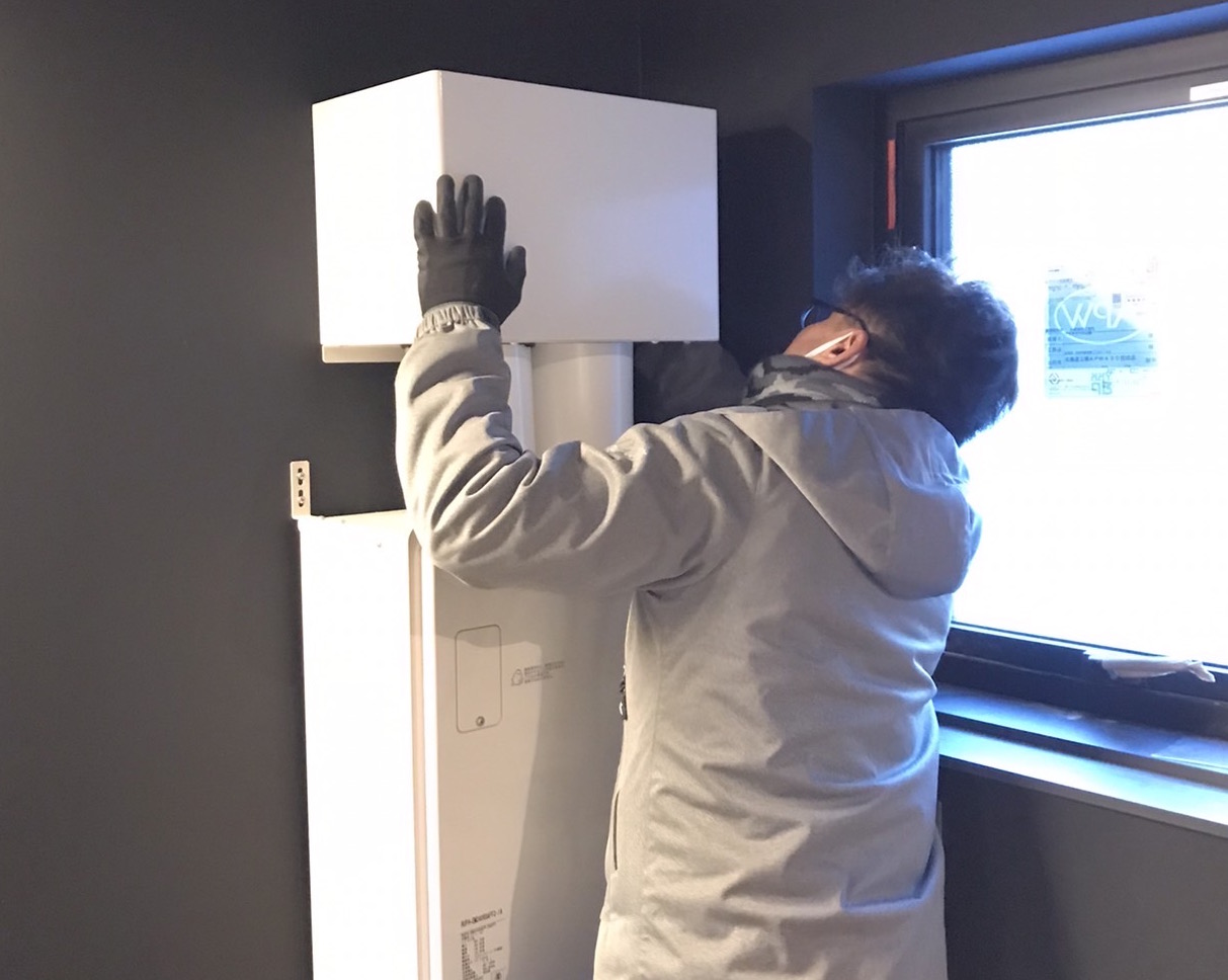 実際のガス給湯器の取付風景です。難しいこともありますが基本的な手順は変わりません。仕事を覚えて資格取得や経験を積むことで一生使える技術として将来の幅が広がりますよ!