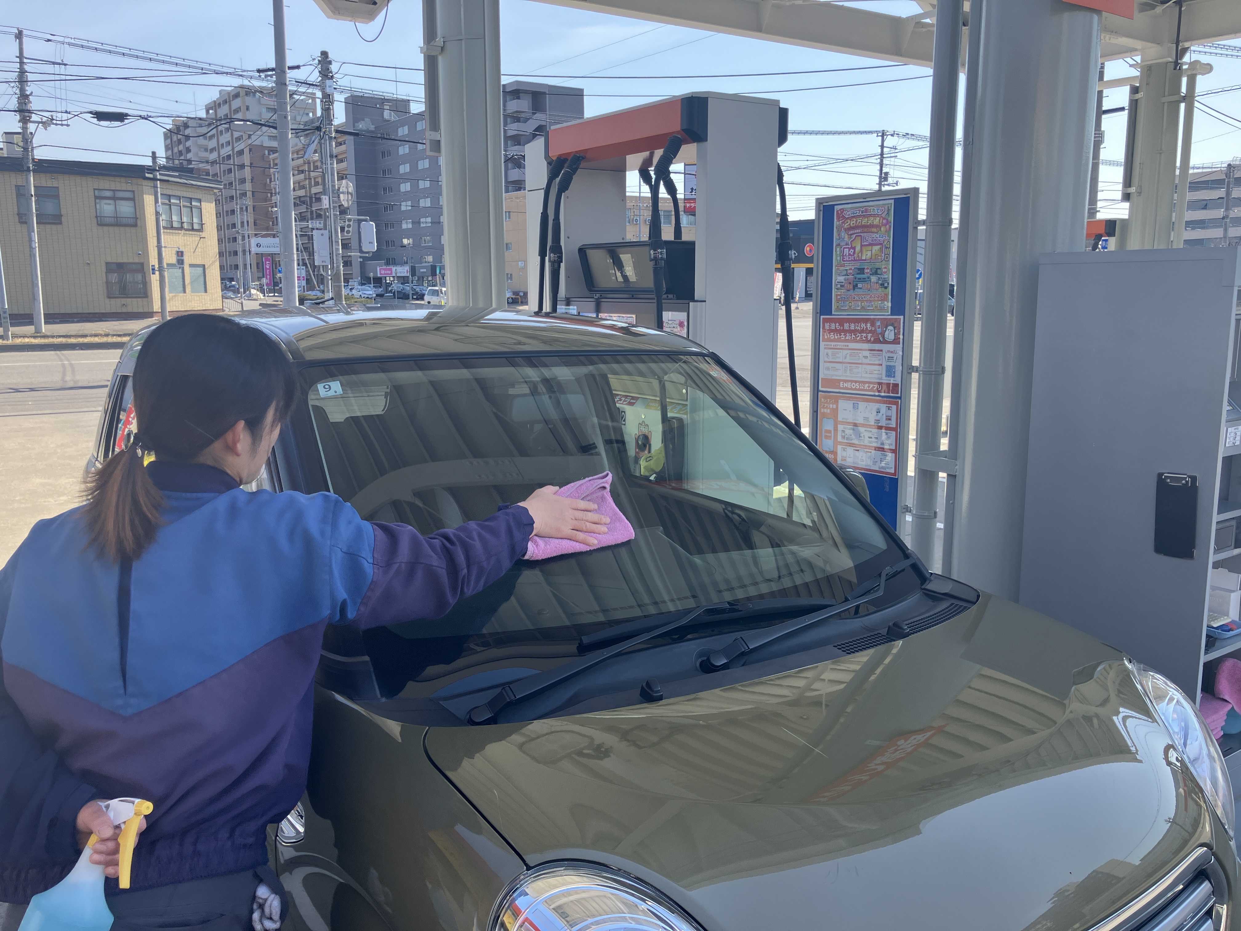 先輩スタッフが基本から丁寧に教えていきますので未経験者もご安心ください♪まずは給油や窓拭きを覚えていただきます。