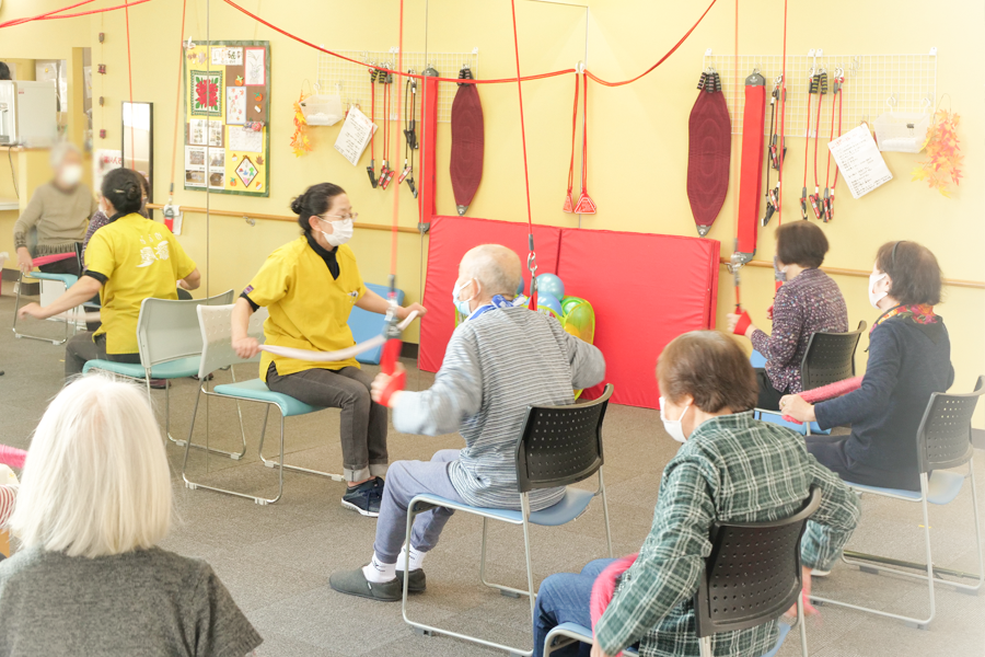 一人ひとりに合わせた生活動作訓練やリハビリなどを楽しく行っております。