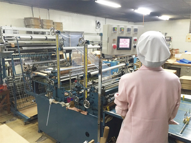 | 仕事内容 | 主に水産関係、漬物用、買い物袋等で使用する袋を作っています。 |
