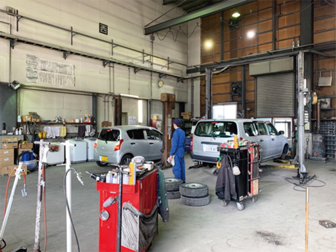 こちらは事務所に併設されている整備工場。入社時の知識は必要ありませんので業界未経験の方もご安心ください。