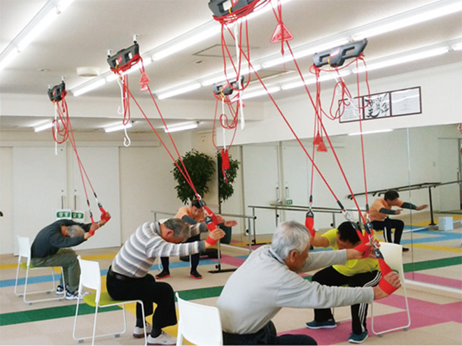 午前・午後共に定員18名で、エアロバイクやバランスボール、振動マシンなど設備を充実させています。