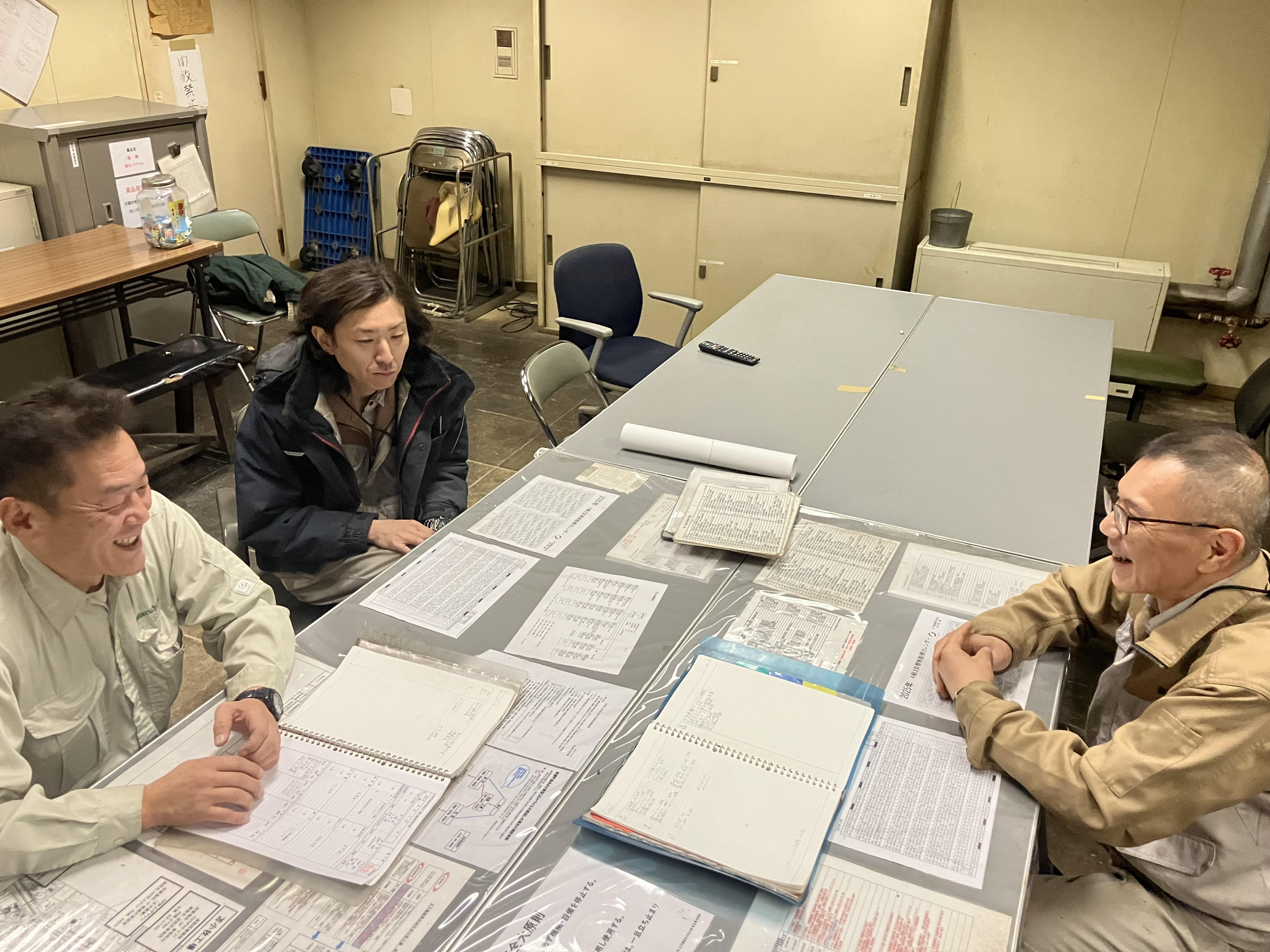 | 教育・研修について | ボイラーは燃料によりタイプが異なり、ゆくゆくは各ボイラーを1〜2名ずつ持ち回りで担当していただきます。新人さんは2カ月程度先輩について、仕事の流れや場所を覚えるところからスタートします。最初は夜勤ではなく、日勤からのスタートなので安心です。3交代のサイクルには徐々に慣れていってくださいね。 |
