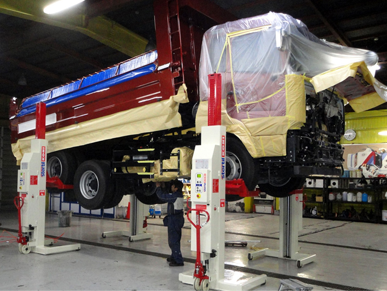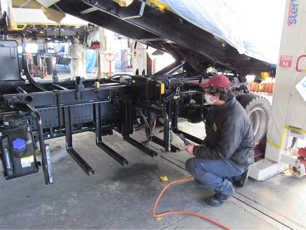 作業する車輌はトラックや観光・路線バスやダンプカー、ゴミ収集車、検診車など。車業界特有の春冬繁忙はなく、年間通して一定量の作業量なのも働きやすさの一つです。