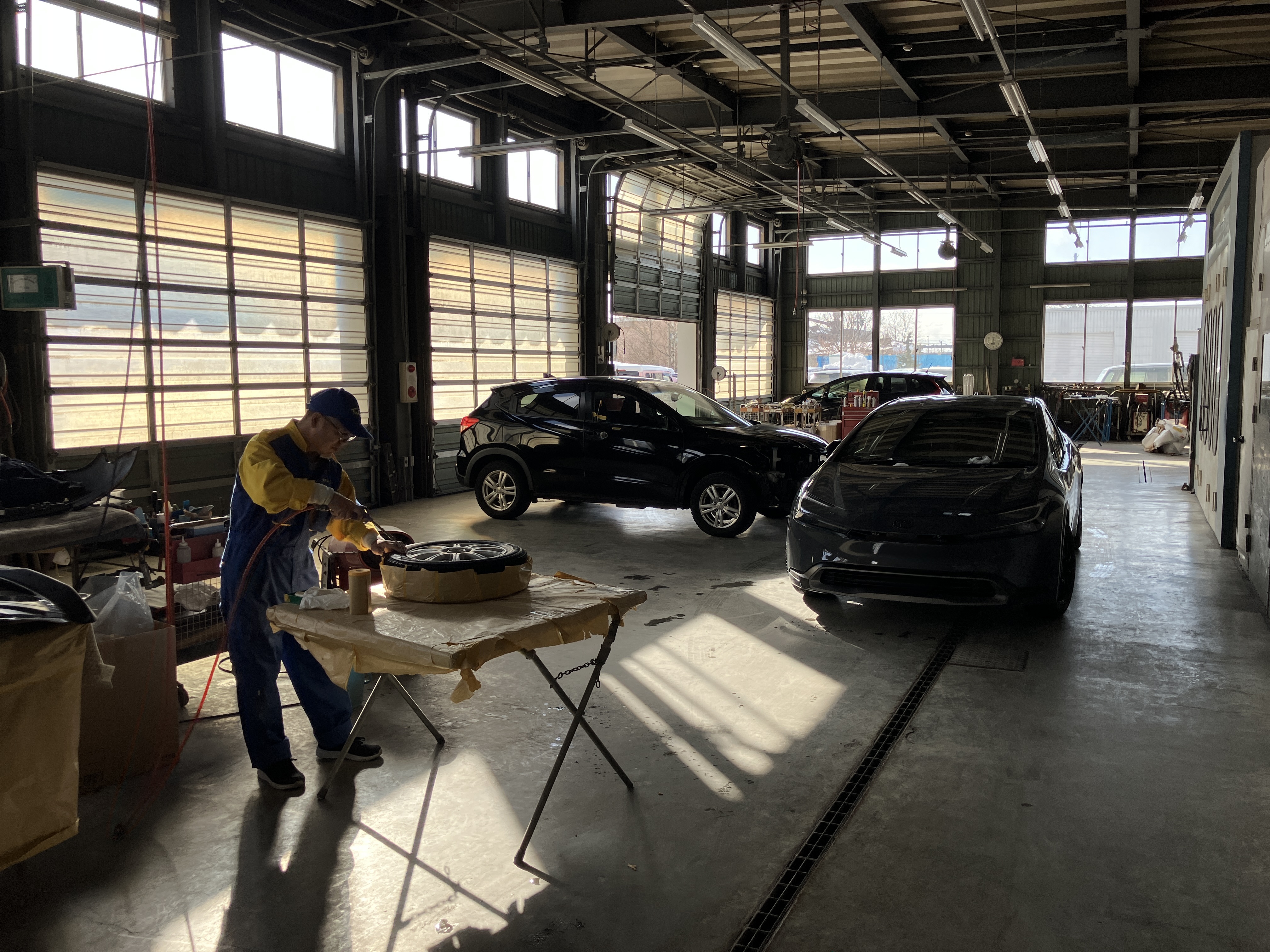 イタリア製塗装ブースを持っていたり、胆振管内で唯一の「ダイヤモンドメイクコーティング」の施工を行っていたり、工場は近郊でもトップクラスの広さがあり作業がしやすいです♪