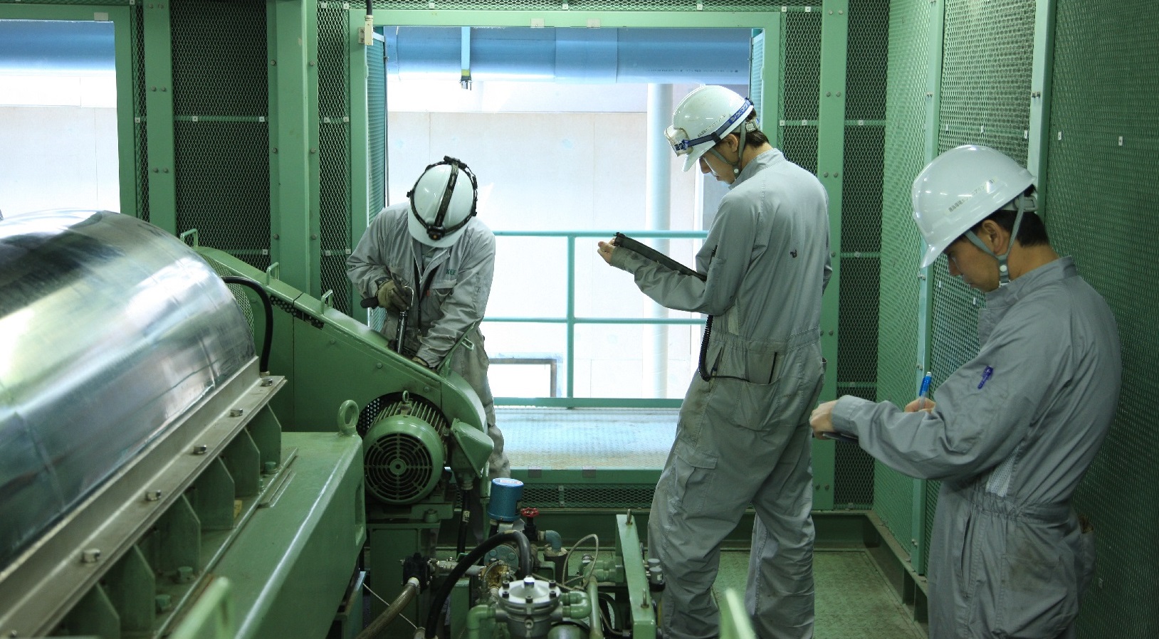 下水処理施設での設備運転管理、機械点検等のお仕事です。
