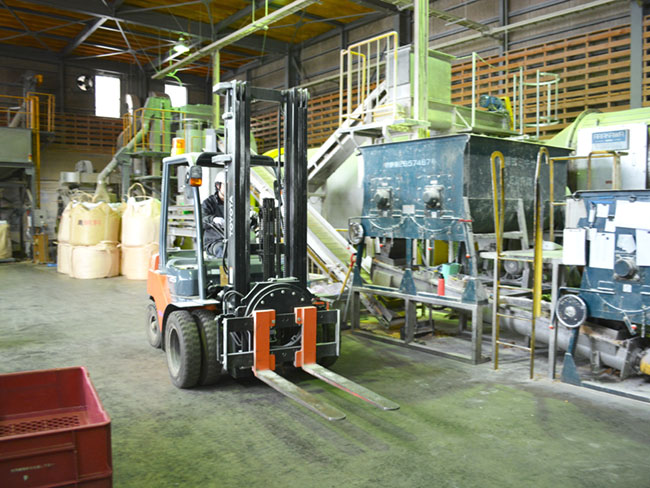 平成18年には飼料製造工場を立ち上げ、食品工場から排出される製造時副産物(余剰生産品及び残渣)を加工し、配合飼料の原料として飼料メーカーに納品しています。