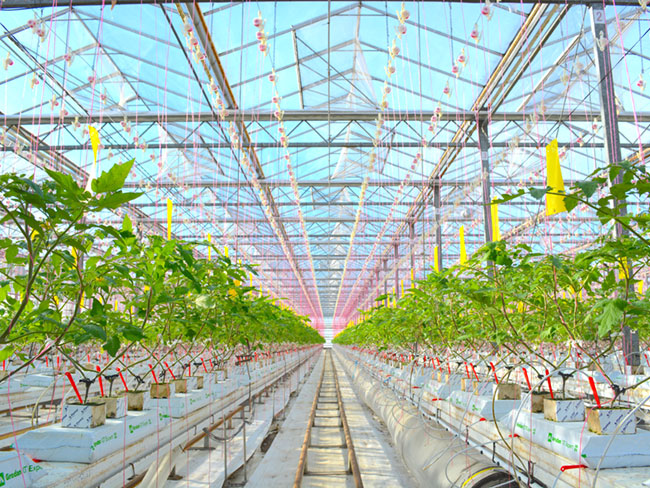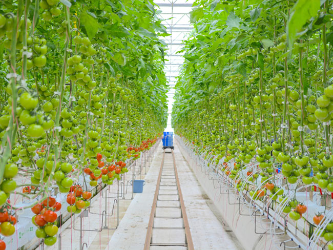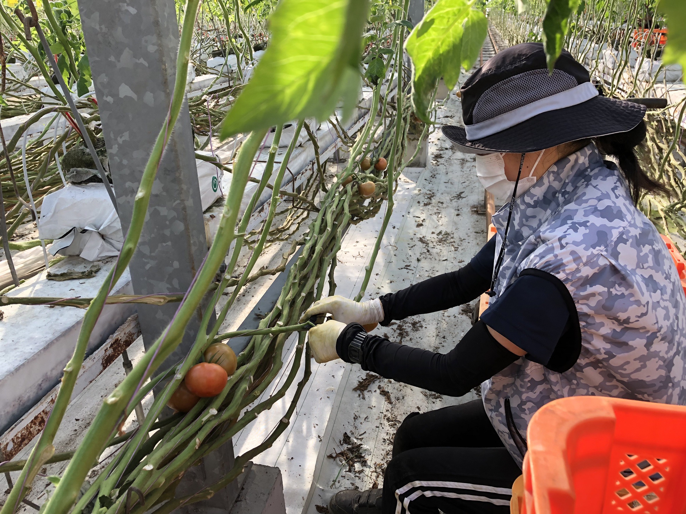 巨大な栽培温室内に無数のトマトの苗が植えられており、そのうちの1エリアを担当し、そこに育つ苗たちに寄り添いながら成長を手助けするお仕事です。