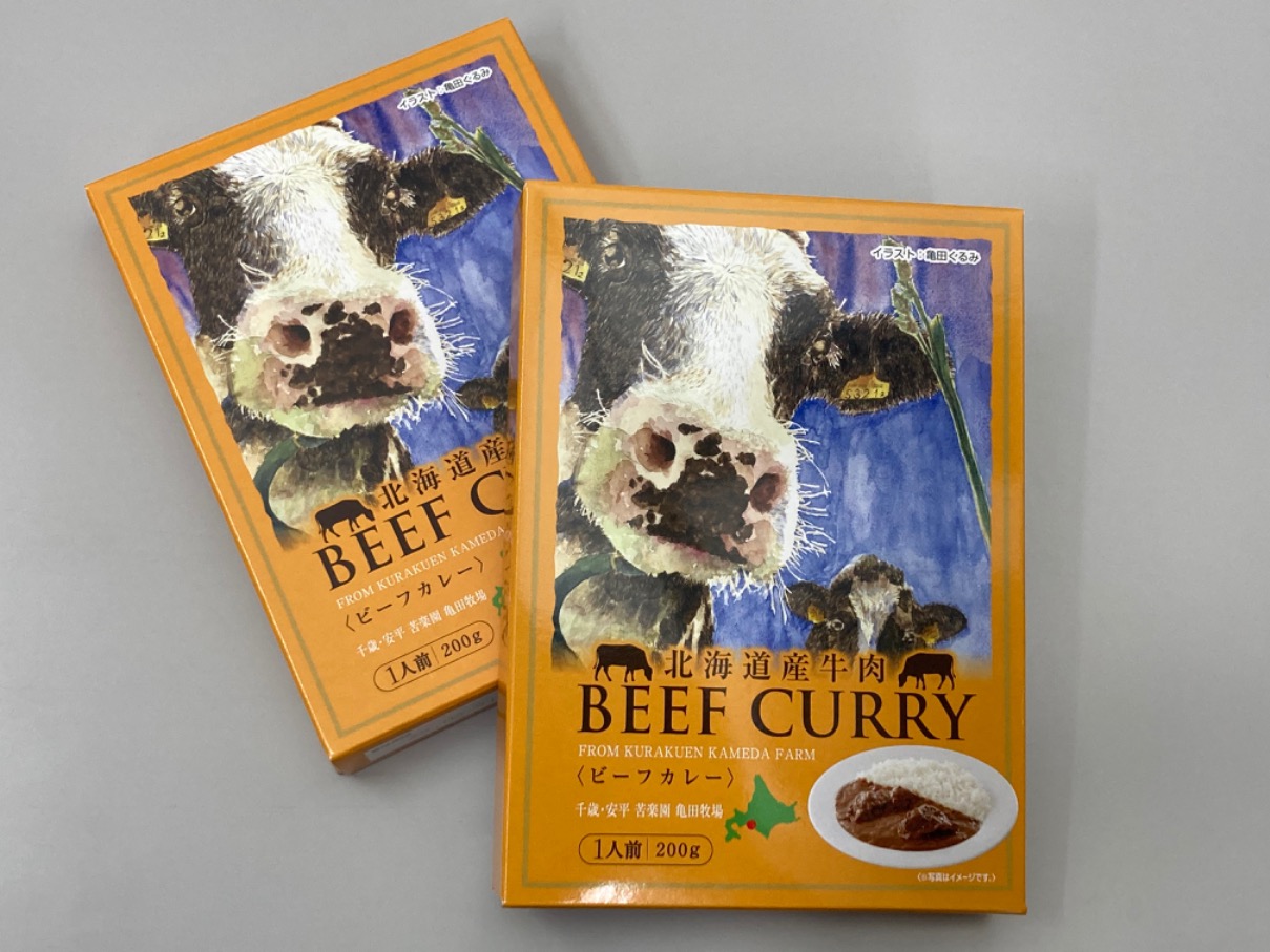 大好評の亀田牧場オリジナルビーフカレーは道の駅などで販売していいます。