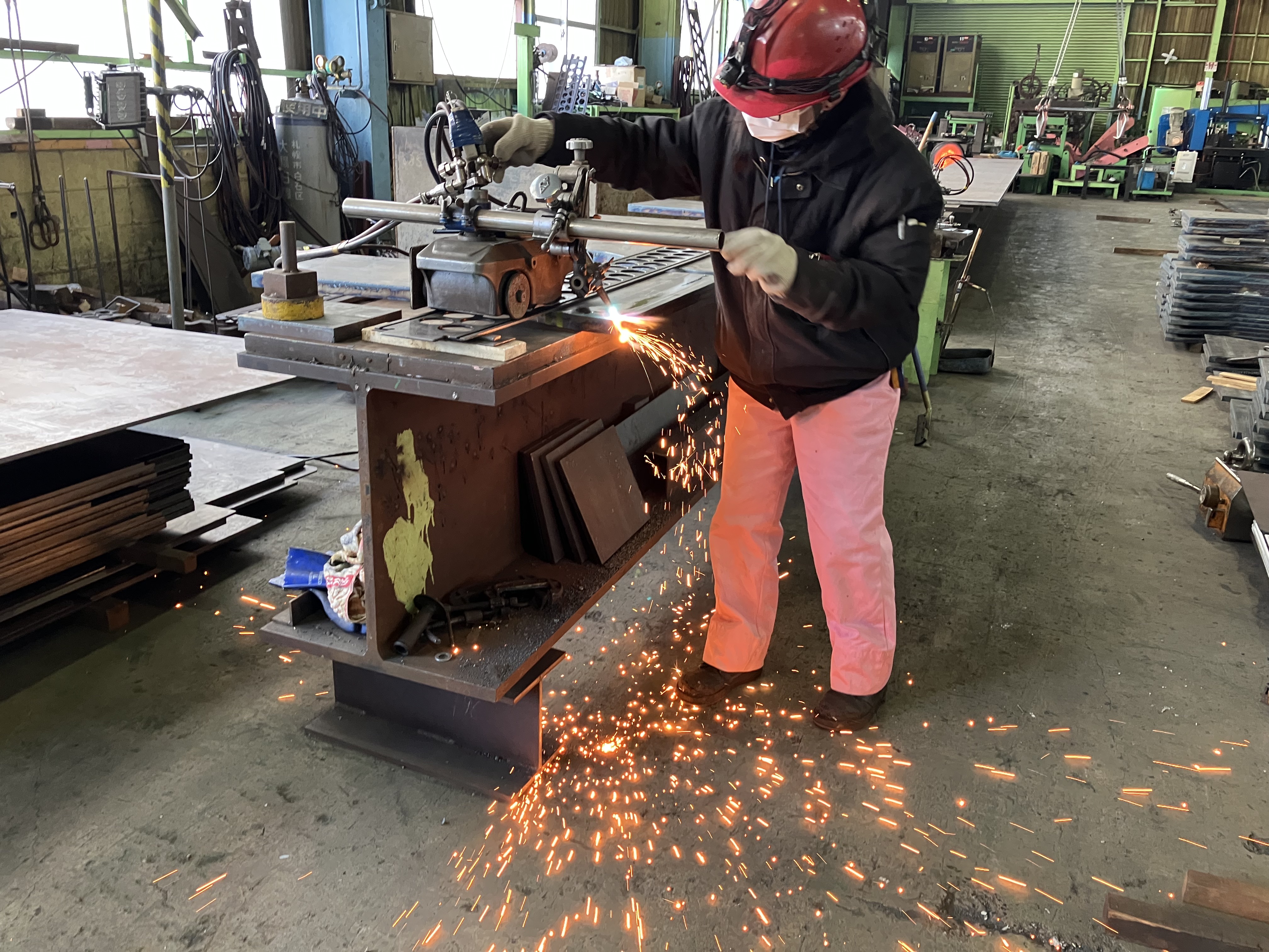 昭和39年の創業以来、道内における鋼板溶断加工の最大手として 1日100tもの生産量を誇っています。 スタッフのために夏は冷たいドリンクの差し入れをする等、なるべく負担をなくすように努力してます!