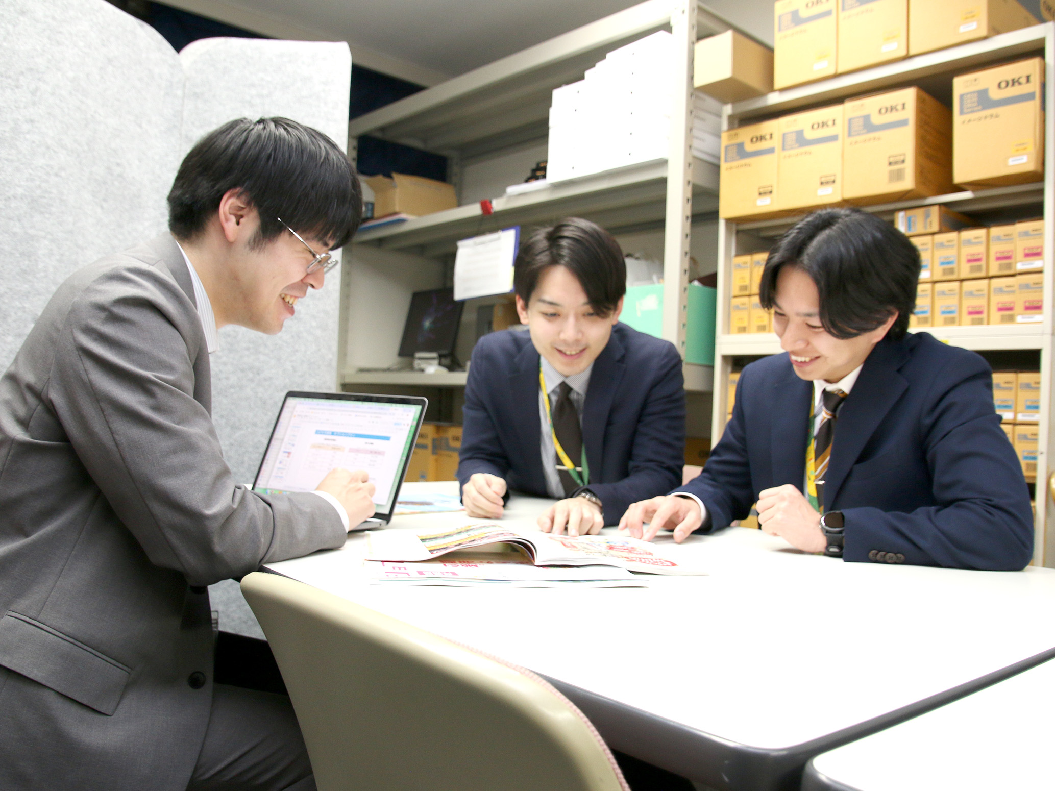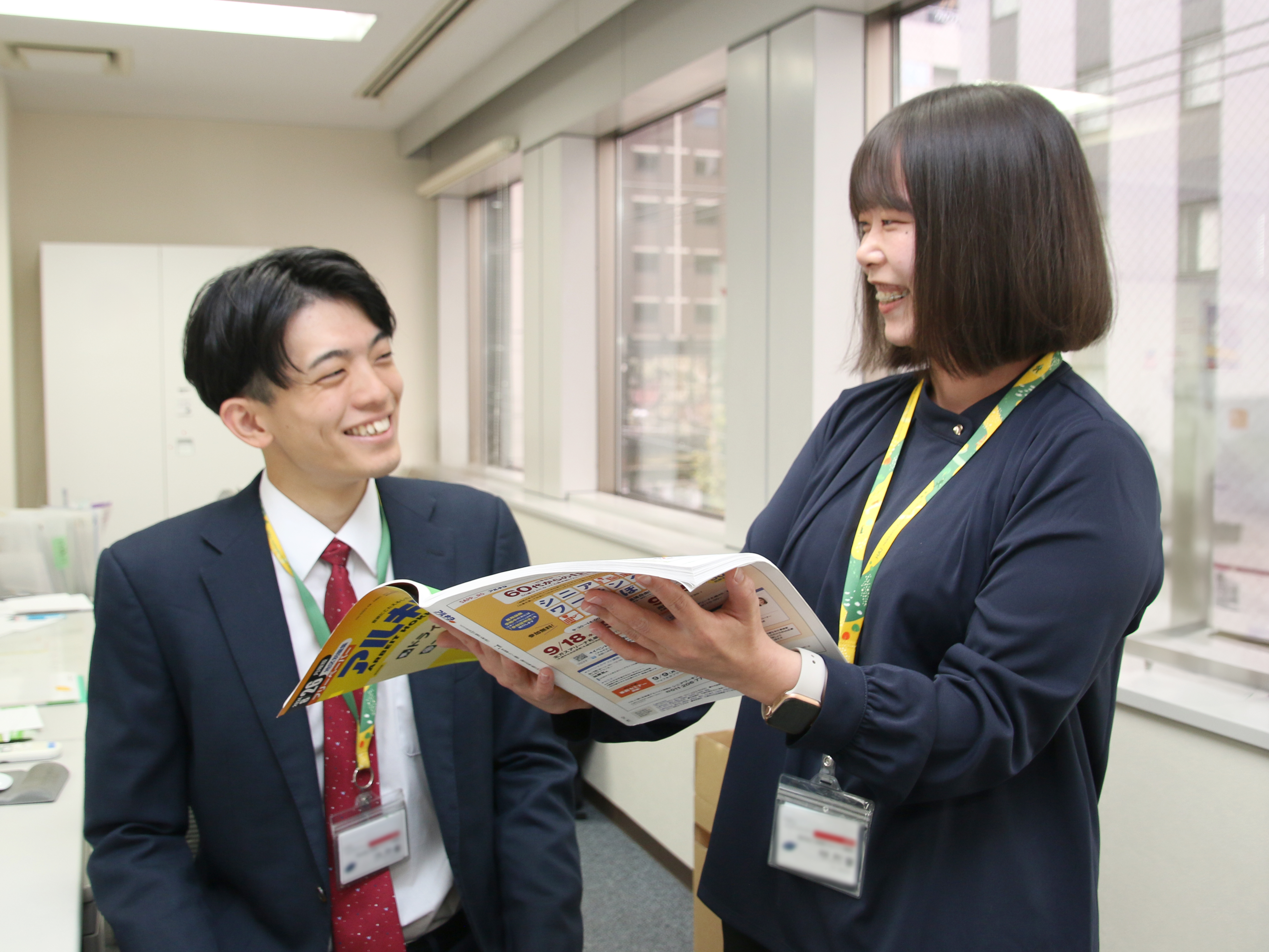 新人研修の専門部署もありますので、しっかりと研修した後、各営業所に配属されます。周りには何かと気に掛けてくれる先輩が多くいるのでご安心下さい。ベテランが新人に原稿の相談をするという場面も多いんですよ。