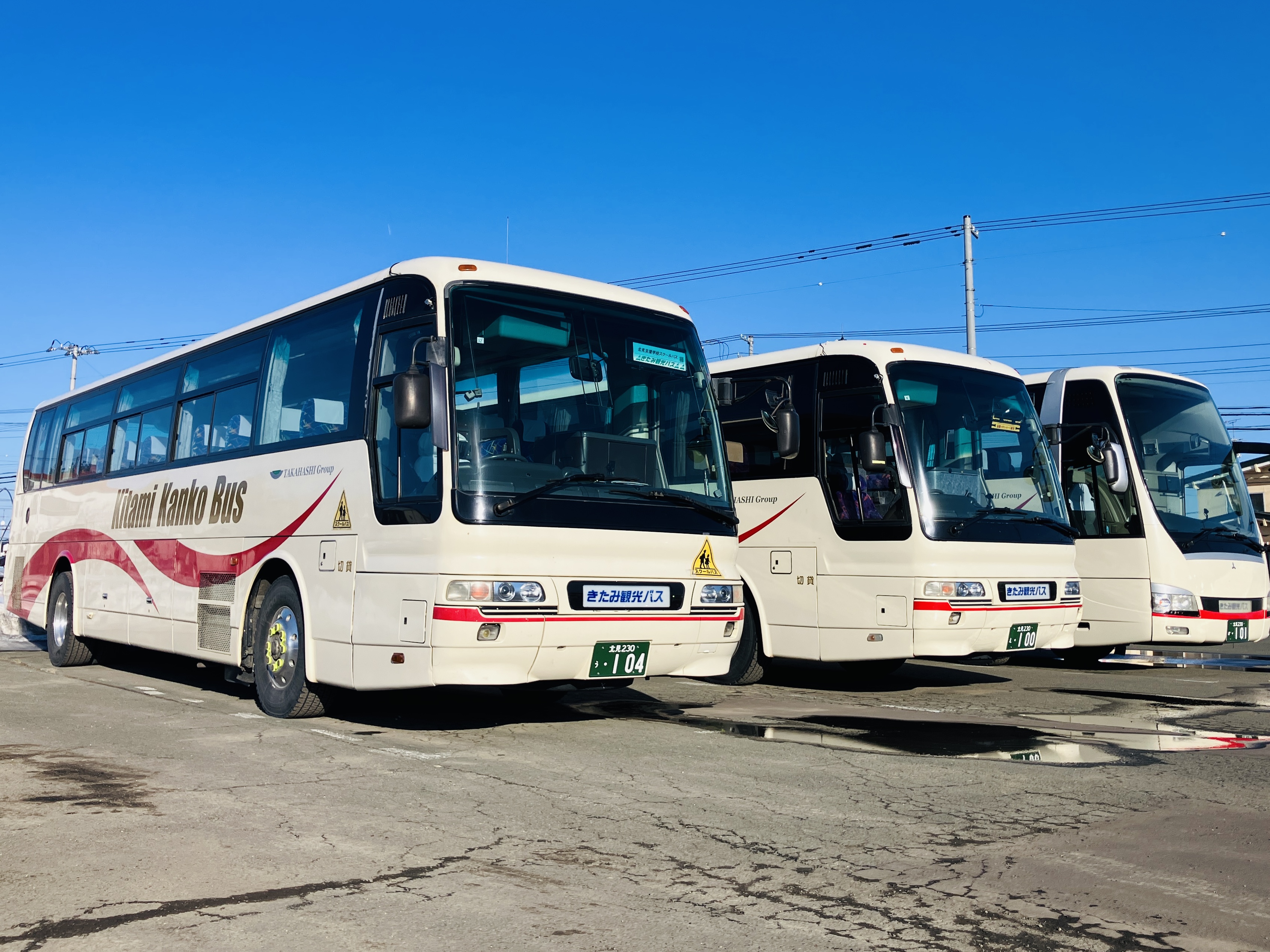 当社の大半を占める学校送迎バス運行・クラブ活動での貸切バス運行の他にも大手旅行会社経由の貸切バス運行、北見市や北海道のスクールバス運行など多様なバス運行事業を行っています。