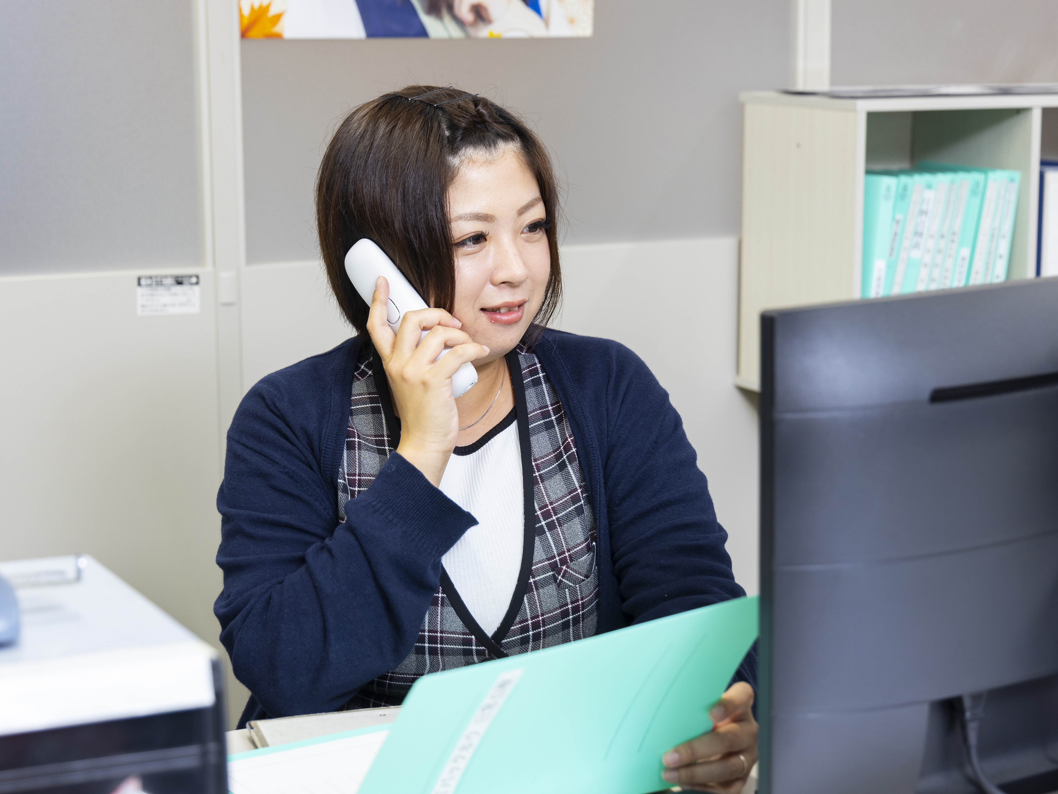 建設ヘルプスタッフが現場で働くスタッフをしっかりサポート。書類作成やデータ作り、電話対応等、現場スタッフが事務所に戻ってきてからの作業負担を減らすために、様々な業務を行っています。