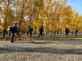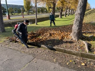 秋には、落ち葉を飛ばす業務もあります。